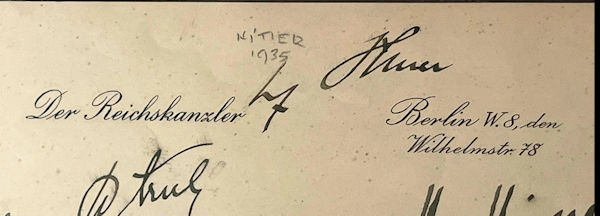 Award Document Signed by Adolf Hitler(Item AHSIG 3-1) |