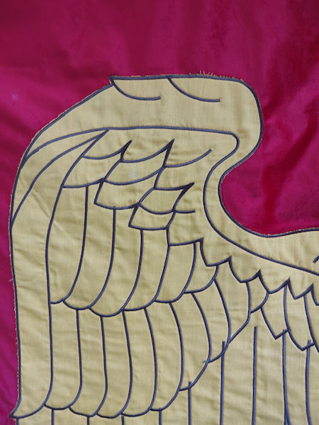 DESCRIPTION: Another Luftwaffe flag in brilliant red with the same beautiful construction of all our others. Silk and rayon; hand sewn with metallic threads, 22 x 22 inches.