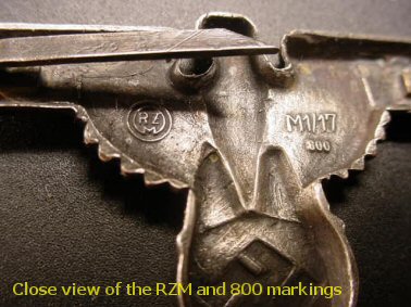 | DESCRIPTION: The salient word here is "silver." The usual metal for the issued SS cap set was a white metal and also in aluminum. The set we offer here is jeweler crafted of pure silver and clearly marked 800. This is of prodigious relevance as the silver versions were quite rare and were not issued. The SS officer who was ‘button bursting’ proud of his membership in the ‘Elite of the Elite’ would purchase this set that is more detailed and it stood out clearly as silver and special! They were individual purchases however. Each piece, both eagle and skull, are also marked with the 800 silver designation. There were various companies that handled silver insignia such as Assman, Wagner and Wilm, etc. Some of the pieces produced had the 800 mark under the jaw of the skull and on the edge of the eagle’s wings. But this 800 was clearly defined in raised numerals central to the back of the eagle and the skull (see the pictures). Examples that were by the other companies invariably had indented numerals not raised in relief. The collector should be advised to be cautious in this regard because certain individuals making modern copies have stamped 800 in sets that are not silver at all but are plated. Although this is not the main criteria for the recognition of authenticity, always look at the quality as the first consideration. This is always the main consideration! No other manufacturer even came close to this perfection and this cap set corroborates this excellence in insignia that is in essence jewelry so to speak. If you would like to see how we managed to procure these sets and many other silver treasures go to our home page and scroll down to the narrative entitled About Our Rings and Silver Insignia. Here is the saga of our greatest find in so many years in the field. We are truly proud to offer this, the finest in SS-N.S. insignia ever designed and produced by a master jeweler. We knew you will be quite thrilled when you actually see the stark beauty of this cap set.