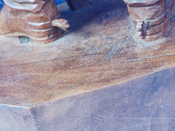 So fortunately, we have rescued it and perhaps you would like to help in the preservation of this magnificent art piece. The bust stands about 12 inches high and Wilhelm II measures about 10 inches across the shoulders. It is a very accurate depiction of the handsome Hohenzollern ruler. He wears the medals of empire on his gorgeous tunic. At the collar he wears the Prussian Black Eagle Order and around his neck is the highest chained Hohenzollern House Order and pinned to the breast is the grand star of the Order of the Black Eagle. The bust is mounted on a wooden plinth because we are told that the original granite one was broken years ago and the third-generation folks had the replacement plinth made for it. On the back there is some writing and it probably was the signature of the company that produced it, but through the handling of it with many hands it is practically worn away.