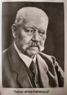 | DESCRIPTION: This is a great paste-in cigarette-card book printed in the time of the NS regime by the Sturm Cigarette Company in Dresden. It’s not about the zeppelin; it’s about the great WWI Field Marshal and first president of Germany, Paul von Hindenburg, the hero of Tannenberg and one of the most successful war leaders of all time. The book has 125 pages with all the glued-in pictures there and intact. The black-and-white pictures are extraordinarily good, sharp, and crisp. The full-color illustrations are great. The pictures and text follow this illustrious career all the way from his first pictures as a young Prussian cadet officer all the way through the Franco-Prussian War, when he was a lieutenant in the Third Guard Regiment 3F in the field up through the First World War to his presidency of the German republic and his meeting with Adolf Hitler, whom he slates as his successor and finally as he is laid to rest at the gigantic memorial crypt at Tannenberg with the largest memorial service and funeral Germany has ever seen. He truly was a warrior and hero and his name will live on to time immemorial. There are hundreds of pictures and illustration here plus, as a bonus, two clippings from German newspapers about the death in 1888 of Frederick Wilhelm III, the Kaiser of Germany, King of Prussia and another chronicle about the death of von Hindenburg. The book is in 100-percent excellent condition with fine linen cover with the Hindenburg coat of arms embossed on the front in high relief. The book measures 9 x 12 inches and is about an inch thick. This is a historical treasure!