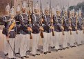 | DESCRIPTION:This in wonderful condition is the parade miter of the First and Second Battalions of the Guard Regiment of Foot (1894 model) for enlisted ranks. Grenadiers were the elite soldiers who were originally a specialized assault group for siege operations, first established with a distinct rule in the mid-to-late 17th century. Grenadiers were soldiers who threw grenades and stormed breaches leading the forefront of such a breakthrough. Five regiments of the Prussian Guard were designated as guard grenadiers and there were an additional fourteen regiments among the line infantry of the German empire. The miter cap, whether in stiffened cloth or metal, became the distinguishing feature of the grenadier in the armies of Britain, Russia, Prussia, and most of the German states during the 18th century. By 1914, the miter survived in three regiments of the Prussian and Russian Imperial Guards. In the case of Prussia it was the First, Second, and Third Battalions of the Regiment of Foot, and it is this miter we offer here in the 1894-1914 model. This helmet features the scaled chinstrap accouterment, although some examples in museums and private collection are seen without them. This would date the actual issue to after 1896, because that is when the chinstrap was introduced. This explains why grenadier caps like the one from the Third Battalion (featured below) would seem to be missing the strap, but one can readily see on that one that no such accouterment ever was attached. The Prussian eagle in the central design has a banner withSemper Talis (“Always the Same” High Standard). This helmet has a red cloth, bold body with trim (once white). The condition is utterly fantastic; the liner is intact; the metal is unmarred; the detail is wonderful. This is truly a very rare piece of imperial headgear and priced very competitively. Seldom is one of these ever found, and they are so scarce in this condition.