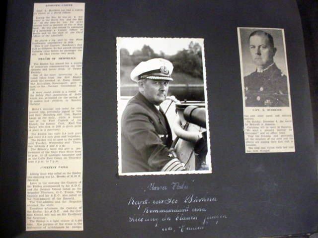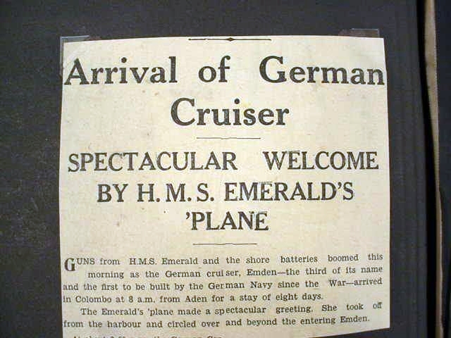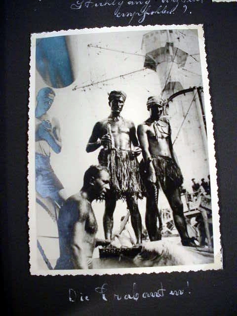 DESCRIPTION: Here is a huge album of photographs chronicling the foreign voyages of the cruiser Emden. Emden was a light cruiser built for the Reichsmarine in the early 1920s. She was the only ship of her class and was the first large warship built in Germany after the end of WW I. She was commissioned into the German fleet in October of 1925. She was armed with a main battery of surplus single-gun turret 15-cm (5.9-inch) guns left over from the war. She had a top speed of 29 knots. Emden spent the majority of her career as a training ship in the interwar period. She conducted several world cruises to train naval cadets and the album offered here clearly illustrates this duty of Emden. She participated in the invasion of Norway in April 1940, and then resumed training in the Baltic Sea. Later, she was deployed to Norway to serve as the flagship of the mine-laying forces, there. In January 1945, she carried the disinterred remains of Field Marshal and President Paul von Hindenburg from Tannenberg in East Prussia to Pillau to prevent his remains from falling into the hands of the advancing barbarous Red army.