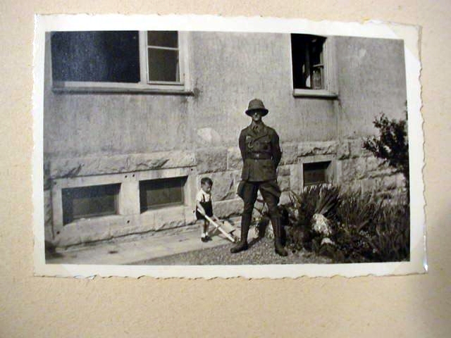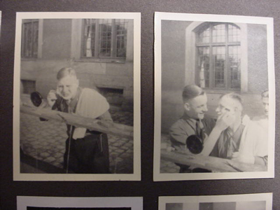 Like every other Deutsche soldier, the album’s owner was keen on taking pictures of other Kaserne throughout the Reich. There many pictures of officers, marching soldiers, early aircraft, gliders, ships, later aircraft and, as a family man and perhaps father, there are always pictures of the children and the homestead. There are pictures of the wedding of his Luftwaffe brother or friend. There is a group of pictures of his barracks room after he became an officer with imperial flag, sword, and a picture of Frederick the Great by Anton Graff. This is the same portrait that Hitler had hanging in his private office in the Reichskanzlei in Berlin.