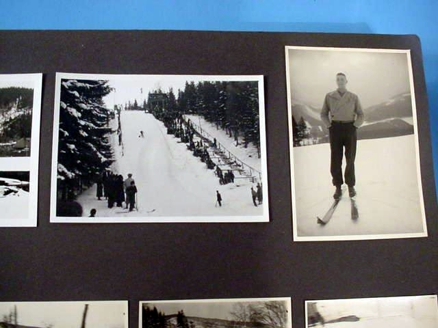 DESCRIPTION: Here is one of the finest soldier albums we have ever found; certainly the largest and most complete with over 450 pictures, all original and some of the best perspectives on the life of the German soldier ever portrayed among all the hundreds of albums we have carried in the past. It is a large album in size, as well, measuring 11 1/2 x 9 inches and a little over an inch thick. Many of the pictures are the 2 x 1 ¾ size, others are 3 ½ x 2 ¼, but most of them are crystal-clear Zeiss Ikon quality. There are hundreds of pictures of the soldiers’ camp life to include pictures of the beautiful barracks buildings. From some of the first pictures it would seem that the owner of the album was in training to be a combat engineer (pioneer). He also was an expert in skiing and there are several pages showing him at this much-beloved German sport. There are several pictures that will warm the heart of collectors such as pictures with machine guns, rifles, motorized troops, and other military machines and even a photo of a “Thingplatz” for the guys who have been in more intensive study of the cultural aplomb of the Third Reich.