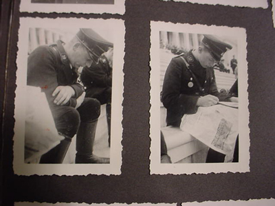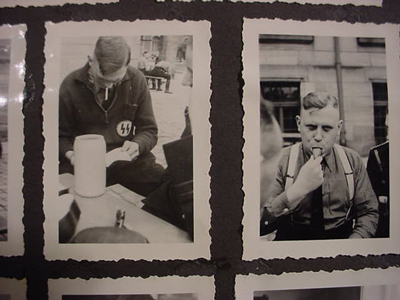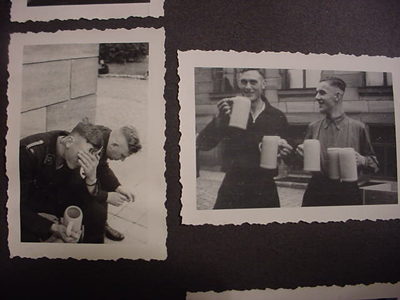 Picture after picture of the great singular pleasure of being an SS man. Lots more beer drinking, A visit to the Nuremberg party rally grounds, SS men posed in front of a giant N.S. eagle tapestry, eExercises with gas mask and rifles and finally some great goose stepping and photos of women of the Frauenshft. (his wife among them?). Just a great SS album that moves to a closer realistic perception of the men of the Shutz-Staffel. (SS)