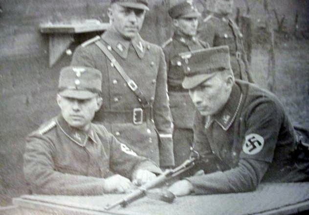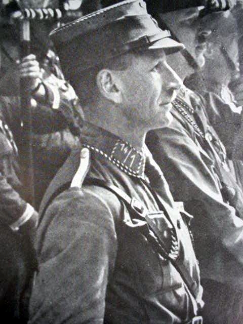 DESCRIPTION: This is an SA flag of honor from the Standarte Munchberg-Naila. This town is located near the border of Czechoslovakia. Naila is a small sub- community near Munchberg and is actually a suburb. The entire area is considered the ‘Hof.” The town of Helmbrechts is also in between and also is a suburb of Munchberg. Munchberg is considered the textile town of Bavaria. The first settlements of those towns date back to the 10th century. The first settlers were Monks and the original name of Munchberg probably was Monk Mountain. The first mention of the town as Munchberg was around 1223. In the time of the NSDAP 1920’s to late 1940’s, Munchberg was a true Bewegung center. Just like in most of Bavaria the people were fiercely loyal to Hitler and the N.S. Party. The first Chapter of the N.S. Party in this part of Bavaria was formed there in 1923. Otto Button was the Ortsgruppenleiter who introduced pro-N.S. films to the local populace like “Bleeding Germany” and the “New Italy” to boost morale and patriotism amongst the populace. The local textile industry in the 1930’s was practically defunct but with Hitler’s rise to power in 1933, business was booming again and soon made great record profits. Part of their success was in producing uniforms, tapestries, armbands and flags such as this one. However, this one is the flag of Munchberg-Nalia. Probably the only one that would represent the district. The ‘Braustubel”, the local tavern and the city and its suburbs were bedecked with Nazi flags every day of the week but one flag, the most honored of all, was shown in a showcase in the city hall and that is this one, the Honor Standard of the District of Upper Franken. Julius Streicher was the Gauleiter of this area and he also spoke in the Munchberg “Braustubel” and of course the standard would have been taken from its repository in the City Hall and it would be displayed on its flagpole held by an SA Fanentrager who would stand by the side of the speaker or behind holding the proud Munchberg-Naila standard. It would be carried in celebrations such as Hitler’s birthday April 20th, and on the 30th January the celebration of the Machtergreifung (the ascension to power of Hitler and the NSDAP). The standarte in full measures 54 x 45 inches not counting the 1 ½ inch silver fringe. The unit patch in the left corner is measured at 8 x 6 inches. It has 3 of the original flag pole rings still mounted on it. The veteran who it was purchased from provided two more rings that came unattached. They will go with the flag. The flag has some moth damage although there are quite a few bites taken by the destructive little buggers. The flag is still nice as you can see in the pictures and the moth munching does not detract from it all that much really. You have to get up close to see it at all but we have shot a few close ups in pictures of most of the mothing. The standarte is rare. It is double sided with center field Swastika and district patch on the obverse and reverse. This is an important piece of N.S. history and an absolutely great collector’s relic. PRICE: SOLD |