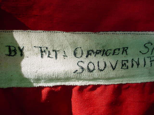 DESCRIPTION: This is a very early trumpet banner of the Death's Head Standard. It is measured at 23 x 18 ½ inches not counting the fringe on the three sides; this silver bullion fringe is about 2 inches long. Also there are three cloth loops at the top that are about 1 ¼ inches long. These are for fastening the banner to the trumpet. The item has been black lighted and passes the tests. The piece was from the estate of PFC James D. Lund, U.S. Army 2679032 who was attached to the U.S. lst Armored Division. To see more about the Totenkopf Verbande go to our site in the Allgemeine SS section listings and go to page four and to SS 4-5. The skull on this banner is probably the ugliest I have ever seen but it must be kept in mind that in the earliest days of the NSDAP there was no issue of such things and it was pretty much go it on your own as far as such individual trappings were constructed. Much of the items like the banner would be pretty much left to the imagination of men in the units and perhaps their wives who did the sewing. The banner is certainly in keeping with the Esprit d’Corp of this unit of steel hard troopers. Later trumpet banners after 1934 were rather more artistically manufactured in a more professional manner. This however is much more rare in that it is a Kampzeit item (Time of Struggle). If it isn’t pretty it is strongly suggestive of power (Starke Macht!) These troops were not anyone that the Commie street hoodlums wanted to tangle with. They were tough and unrelenting. The material is a heavy grade wool that has a natural stiffness to it, not at all light or flimsy. The wool has the same weave pattern as some of the NSDAP banners. The skull being jawless is much like the Hussar skulls on the busbies of those stalwart elite horsemen of old. The SS runes and skull are fashioned from a high grade linen and are applied by way of heavy machine stitching in an overlapped (V) pattern. Both display dye bleed into them from the black wool base. They have brown age discoloring in areas. There is one area where the weave has been slightly broken on one rune where this was folded onto itself. The bullion has a cotton base that has age where it is exposed to a camel brown color and the bullion itself has an age patina that is exactly like other flags that we have acquired from veterans. So, we are quite content that this banner is 100% original and extremely rare. PRICE: SOLD |