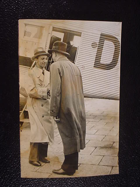 DESCRIPTION:This is a 3 ½ x 5 ½ photo of Dr. Goebbels being greeted by various party functionaries as he arrives in Erastruck on July 18, 1938. It is a nice clear photo and we do believe it is an original photo developed and printed on postcard stock. Very nice and historically important.