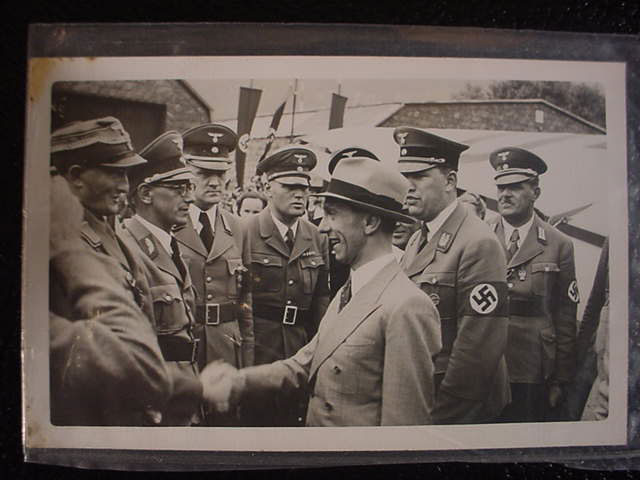 DESCRIPTION: This is a nice clear photo of Dr. Goebbels as he is greeted by various members of the NSDAP and political leader core somewhere in Germany.
