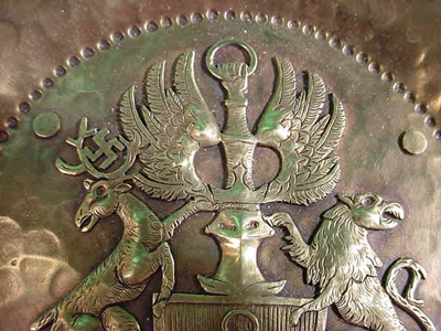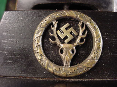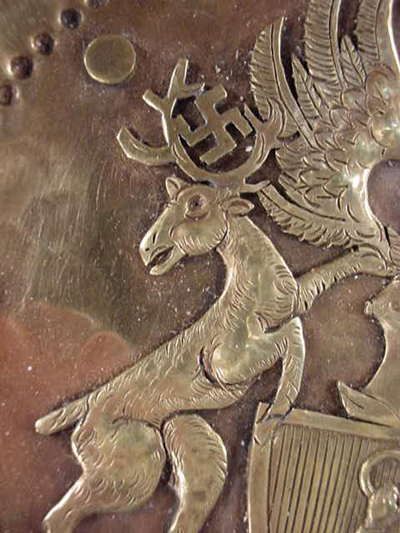 At the very top rim of the goblet you can see these famed hunting calls of the sport. Between these words of Horrido and Hallali is the symbol of the National Socialist hunting association that Goring founded. This is individually jeweler crafted and is not one of the membership pins that has been adhered. This was certainly a great find and how could any hunting trophy be more important than this one? Madison Grant obviously never received the pokal unfortunately and it seems that Herr Goring kept it after hearing that Grant had died. Madison Grant had no relatives such as wife; he never married and of course had no children. I suppose that Marshal Goring could have presented it to the N.Y. Zoological Society but it would appear that he decided to keep it as a personal memorial to his friend. The goblet was taken from Goring’s Castle Veldenstein by neighbors that didn’t want it to fall in the thieving hands of GI Joe or Ivan! Hundreds of such treasures were taken into protective custody by townsfolk back then, and are just now being brought forward. Our German picker has made contact with many of these families and has been fortunate in procuring some great Goring items that otherwise would have possibly been destroyed or might be sitting in Moscow. (Better in your collection!) Veldenstein Castle was where Goring sent many of his treasures in 1945 hoping that after a just peace would be reached with the allies, he would go there and reclaim his precious items. This however was a dream that evaporated in the aftermath of the war and the Star Chamber court proceedings of the Nuremberg War Crimes Trial. So, today this pokal stands in mute testimony to both the notable men and sportsmen and regardless of what is said to demonize their memory there are some Americans and Germans who will remember the positive accomplishments of “Unser Hermann” and that great American author and sportsman Madison Grant. This is without a doubt is the most historically important relic ever offered by Germania or any other web site and that is our considered opinion!