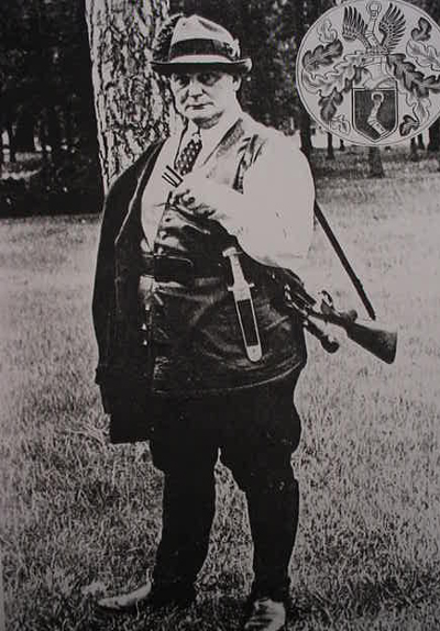 Of the greatest importance to the saga of the rifle we review here is that in 1933 Hermann Goring was appointed and given the title of Reichsjagermeister (Master of the Hunt) by Hitler and this among all the of the titles he bore, was his favorite office and he excelled in this work of enacting laws and regulations for the protection of the German forest and animals. Many of the game preservation laws and environmental policies that he personally initiated are still in use today. The city of Suhl particularly admired him and his preservation endeavors for many reasons just as the German public did in those years. The populace called him “Unser Hermann.” The city fathers of course did not miss the business opportunities presented. Now that Germany, the land that from time immemorial has loved the hunting sports was even more enamored with it due to the great General Göring’s promotion of the hunting sport. Gun sales soared in 1933-1935. We understand that presentations of special and more common guns were presented to him by the city and even directly from the gun manufacturers themselves on several occasions but especially on Christmas. We know of the Merkel 8 x 57 cal. rifle shotgun combination that was presented by the city to him in Christmas of 1935. There is some information from several sources put forth in Germany that Göring among his many guns had about 27 that were given to him by the city and companies of Suhl. However this one remains without a doubt the ultra-finest that has ever been found to date. There are pictures of him with a rifle that looks to be the very one and we do present some of them. For now this is circumstantial supposition but in a few pictures of him it really seems to be the one -- and why not? Surely he would want to be pictured with his favorite hunting piece and almost assuredly this would just have to be the one!