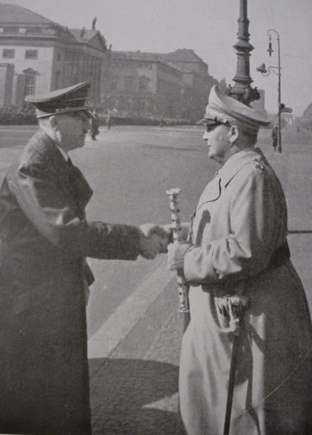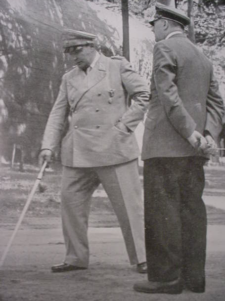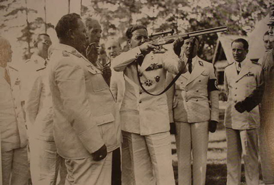 *We would particularly direct your attention to the picture of Generalfeldmarshall Göring with an assemblage of German and Italian officers as the Chief Italian Air Marshal Italo Balbo sights in one of his host's double rifles at Carinhalle in 1938. In other pictures of him in hunting dress almost invariably you can see a double over and under rifle and looking as closely as possible one can at least speculate that we are looking at the very same gun as this one we address here.