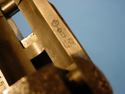 #4 the barrels are marked ‘Special Gewehr Lauf Stahl which translates roughly to (special rifle run) or probably a more understandable translation would be ‘special rife production steel’. It also says on the barrels Fried Krupp. A. G. Essen and practically everyone would be familiar with the world famous Krupp industry in Essen. This conglomerate is a prominent 400 year old dynasty famous for their steel production. The underneath portion of the barrels have the serial no 268615 accompanied with some sort of proof marks, there is also two S letters intertwined. The three ring configuration of Krupp is also seen here. It looks rather like the Olympic rings (minus two); these marks are also on the side rails of the interior.