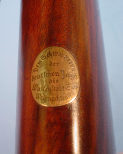 Generally in this case there would be a ceremony of presentation befitting the dignified occasion usually sponsored by the mayor and city council. We certainly believe this had to have been the case when Göring received this elegant gift that can only be called a Suhl masterpiece. History records that Hermann was like a boy with his first B-B gun, when the city would always give him an outstanding gun on each Christmas day. He loved the weapons and doted over them like a lioness with her cub. Nothing could be a greater gift to “Unser Hermann” (Our Hermann). It has been suggested and it is probably true that he or an aide might have dropped a bit of a friendly hint about his preferences when this the grandest of German holidays approached.