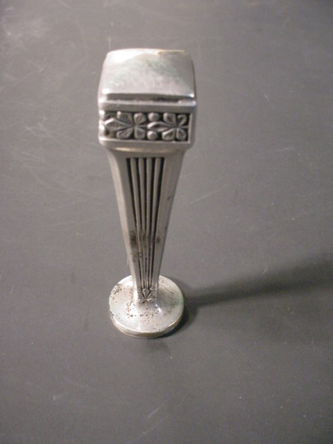 DESCRIPTION: Here is a sealing stamp done up in Art Deco style from Carinhalle the palatial mansion of Reichsmarshal Hermann Göring. This is characteristic of the elegant expressionism of everything belonging to this man who was called the ‘modern day Falstaff’. His predisposition to collect the finest of everything has been historically noted. Even down to a little tool such as this (petshaft) must be stylized and handsome and this piece certainly is that! It measures a little over 3 inches in length and the round stamp portion it supports is about the size of an American 5 cent coin about 1 inch in diameter. The design is fashioned to have the look of a theatrical column with a crown decorated with floral design. The round stamper has the Göring crest that depicts an armored human arm which in its hand portion is a clutched ring; some say this is reminiscent of the ring of the Nebelungen from Wagnerian opera. Under this is the H.G. for Hermann Göring. The piece is surprisingly light – it must be hollow. The historical importance is obvious and the price most reasonable. For such a rare piece!