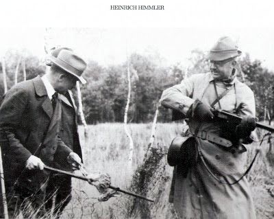 DESCRIPTION: This chest is constructed from iron with a wooden interior. It is probably one of the finest pieces of Himmler-related items ever found. It was taken from the home of the Reichsführer SS at Gmund in Lake Tegernsee in 1945 by an American soldier (looter). This was the same villa that the chair came from that we feature in the Himmler section of our site. The box is measured at 10" x 8" across the top and 3 ½" deep counting the feet. The design is indicative of the work of the SS Ahnenerbe. (See our explanation of this Heritage Foundation as well on our pages. There is a wealth of information there.) You can also put the word, ‘Ahnenerbe’ into Google and much more can be extrapolated. The words’ “Meine Ahnen” are to be seen in cut-out iron letters on the top of the chest -- this translates to My Ancestry; on the right side is a figure that represents the Irminsul with the “Sonnenrad” (sun symbol) behind it with Swastika (It was the sacred symbol of the Saxons.) In the left lower section you can see a stylized SS symbol in a circle. The Ahnenerbe was the favored pet project of Heinrich Himmler and many gifts were bestowed upon him at his birthday, anniversaries and just about every time he would be visited by officials of the organization including, of course, SS Standartenführer Wolfram Sievers; he was the official chairman of the Kuratorium and he held the real power in the organization. The foundation had several (50) different departments all with various agendas. Expeditions to Tibet and other far flung places, Germanic music, excavations, medical department studies, having to do with nutrition and folk medicine, farming innovations, the social sciences as well as natural science were exhaustingly covered, studies of the Celtic and Nordic culture. One of the departments was for the study and recreation of Germanic art and it was here that they created items that were important to the Nordic mythos. Teutonic swords, and daggers shields, etc. Here also such items as this chest would be created using pagan and symbolic designs that would reflect the importance of ancestry and the dedication to the National Socialist principles and ideals. This brings us to the fact that this would have been the perfect gift for Himmler because for all intents and purposes it really says it all! On the front of the chest is an N.S. eagle and swastika of the style used in the earliest days of the N.S. movement (in the mid 20’s), this is also fashioned in iron. It is in keeping with all the rest of the design when one considers the full meaning of the gift. The stylized SS also has meaning in the fact that the Ahnenerbe was under the directorship of the general secretary and SS Standartenführer, Seivers, who was keenly interest in the evolvement of the swastika and the SS symbolism from ancient times. The "S" was used on Teutonic war shields and weapons and under Siever's directives,various patterns of the usage of SS were used, so this rather different usage and design on the chest’s top is to be expected in an Ahnenerbe production. We are quite certain that this gift was actually from this much acclaimed academic group. When the GIs broke into the house in Gmund, on the shores of Tegernsee, this chest was taken along with many other items. Thinking that the box contained jewels or other precious objects, the looters couldn’t contain their lustful greed. There was a key sitting right in the lock but it would have had to be turned and then re-inserted in another hole beside it and turned again and the lock would have opened easily but since they were lusting heavily to open it, they never even noticed the second hole and since it would not open for them, they forced it open with a bayonet thereby destroying the lock. You can see in our picture the two lock entry points. This chest was kept in the Gmund residence in a closet and undoubtedly contained papers and/or microfilm having to do with the ancestry of the Reichsfuhrer. When the box was opened by the looters, there was consternation and great disappointment. The contents were stupidly thrown in a trash barrel by the GIs without a thought of their importance to history and the chest was carried away by the “grunts.” Carefully, so that the intelligence officers would not see it because if they had the chest would have been seized and the contents might have still been able to be rescued. There was strict orders that no looting was to be permitted, especially at this residence. So, that is the story as relayed to us by the son of the veteran who prefers to go unnamed. This is an exiting relic of the SS and of its leader. It also is very important in that it is from the Ahnenerbe and that is so crucial to the understanding of one of the admittedly positive aspect of the Third Reich. Obviously extremely rare and certainly a valuable relic of the Reich. PRICE: SOLD |