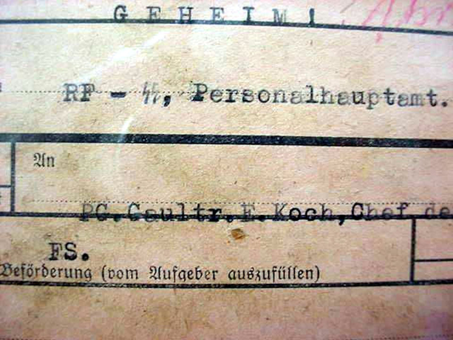 DESCRIPTION: Geheim! = Secret! This document is clearly marked “Geheime Kommandosache” and dated 23.3.1944 and says “SS R.F. Personalhauptamt” (Head Office of the Reichsführer-SS Heinrich Himmler). The directive is to the attention of and to be seen only by Gauleiter Erich Koch, Chef der Zivilverwaltung (Chief of Civil Administration) and we would not venture to suppose what the key words in the secret message might be—undoubtedly, they are there! We will probably never know, but this is still a great and highly interesting document important enough for R.F. Himmler to hand sign it. It does say “Geheim[e]” in three places. The document is also stamped “Durch besonderen Boten” which means “with all due caution.” This is far from the normal dispatch of orders; even the color of the paper is not the usual office white. This document has a tinted peach or sepia coloration that would stand right out indicating “special handling” and reflects vigilance by the addressee. Himmler’s directive is a no-nonsense, emphatic demand leaving no room for deviation or error. Translation follows: My order of 13.2.44 expressly states that interference on your [Koch] part in the matter, which has been mentioned here in your presence, is not permitted. In all cases, the person responsible is Wilhelm Koppe, SS Senior Group Leader and State Secretary for Security in the General Government. As the head of the police in Poznan told me, there is no danger of suppression of evidence in the case of H. Warnitz. For the record: /s/ Gebhardt Reichsführer-SS /s/ H. Himmler Signature of Issuer The Document The document measures 11½ x 8 inches and is in good shape with no smudges or rips; however, there are two reinforced binder holes to the left side. It’s mounted in a heavy museum-type framing with special heat- and glare-proof glass that measures 17 x 40 inches when viewed inside the frame, and nicely mounted are a clear photograph of Reichsführer-SS H. Himmler and one of Gauleiter Erich Koch (June 1896-November 1986). Koch was a Gauleiter of the Nazi Party (NSDAP) in East Prussia from October 1928 until 1945. Between 1941 and 1945, he was Chief of Civil Administration (Chef der Zivilverwaltung) of the Bialystok District. Koch was born in Elberfeld in 1896. Between 1915 and 1918, he fought for Germany in WWI, serving with distinction. After Germany’s defeat in that war, and with a massive reduction of the German armed forces, he joined the Freikorps in Silesia. It consisted of paramilitary units fighting against Communists and Polish incursions into eastern Germany. Many of these men went on to be senior Nazis who served in the NSDAP ranks. As a veteran and disappointed by the state of post-WWI Germany, Koch felt that his whole purpose in life was to live and even die for his Vaterland and the German people. He joined the NSDAP in 1922 (member #90) and worked in various party positions in the NSDAP—Gau Ruhr. During the Occupation of the Ruhr, he was a member of Albert Leo Schlageter’s group and was imprisoned several times by the French authorities. In 1927, he became Bezirksführer (District Guide) of the NSDAP in Essen, and later, the deputy Gauleiter of Gau Ruhr. Koch belonged to the left wing of the party and was a supporter of the faction led by Gregor Strasser, but later saw the light and faithfully supported Hitler as Gruppenführer and Gauleiter of East Prussia. Koch’s prewar rule in East Prussia was characterized by efforts to collectivize the local agriculture and ruthlessness in dealing with his critics inside and outside the party. He also had long-term plans for mass-scale industrialization of the largely agricultural province. These actions made him unpopular among the local peasants. However, through publically funded emergency relief programs concentrating on agriculture land-improvement projects and road construction, the “Erich Koch Plan” for East Prussia allegedly made the province free of unemployment. On August 16, 1933, Koch reported to Hitler that unemployment had been banished entirely from East Prussia, a feat that gained admiration throughout the Reich. Koch’s industrialization plans led him into conflict with Richard Walther Darré, who held the office of the Reich Peasant Leader (Reichsbauernführer) and Minister of Agriculture. Darré, a neopaganist rural romantic, wanted to enforce his vision of an agricultural East Prussia. When his “land” representatives challenged Koch’s plans, Koch had them arrested. There was no love lost between Himmler and Koch, either, but each appreciated the other’s talents and efforts. Koch was one of a few openly Christian Nazi Party members. In addition to his political career, he was also one of the elected pastors of the Synod of the old Russian Ecclesiastical Province of East Prussia. Although Koch gave preference to the Deutsche Christen movement over traditional Protestant concepts, his contemporaries regarded him as a bone fide Christian, whose success in his church career could be attributed to his commitment to the Lutheran faith. This might have been a bone of contention between Himmler and Koch, as well. He was essentially a rather strict master in his later-appointed rule in the Ukraine and was a vengeful pursuer in punishment of partisans. He is rumored to have said: “We are a master race which must remember that the lowliest German worker is racially and biologically a thousand times more valuable than some of the population here.” He was not referring to the good and noble Ukrainian people that he admired, but rather the mongoloid admixtures found in the Ukrainian hinterlands. So, the document is in all probability a truly rare secret dispatch with genuine importance historically and it leaves the door wide open for more interesting research. PRICE: $3,500.00 |