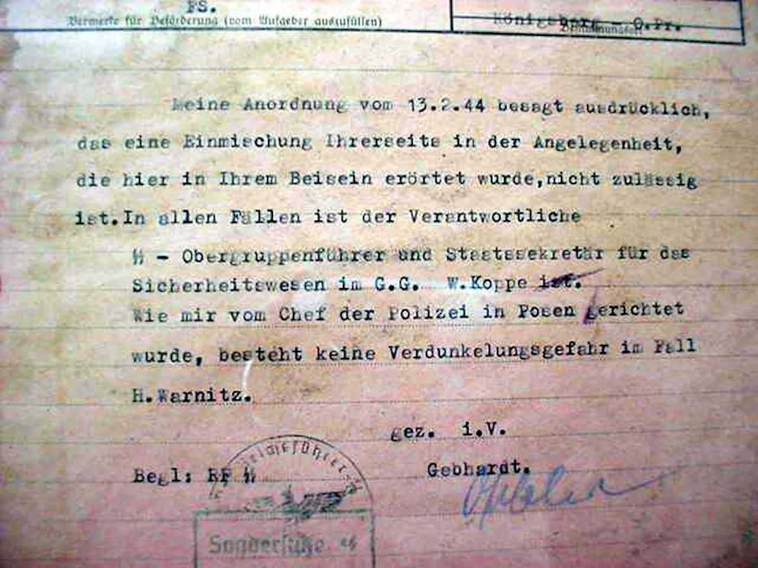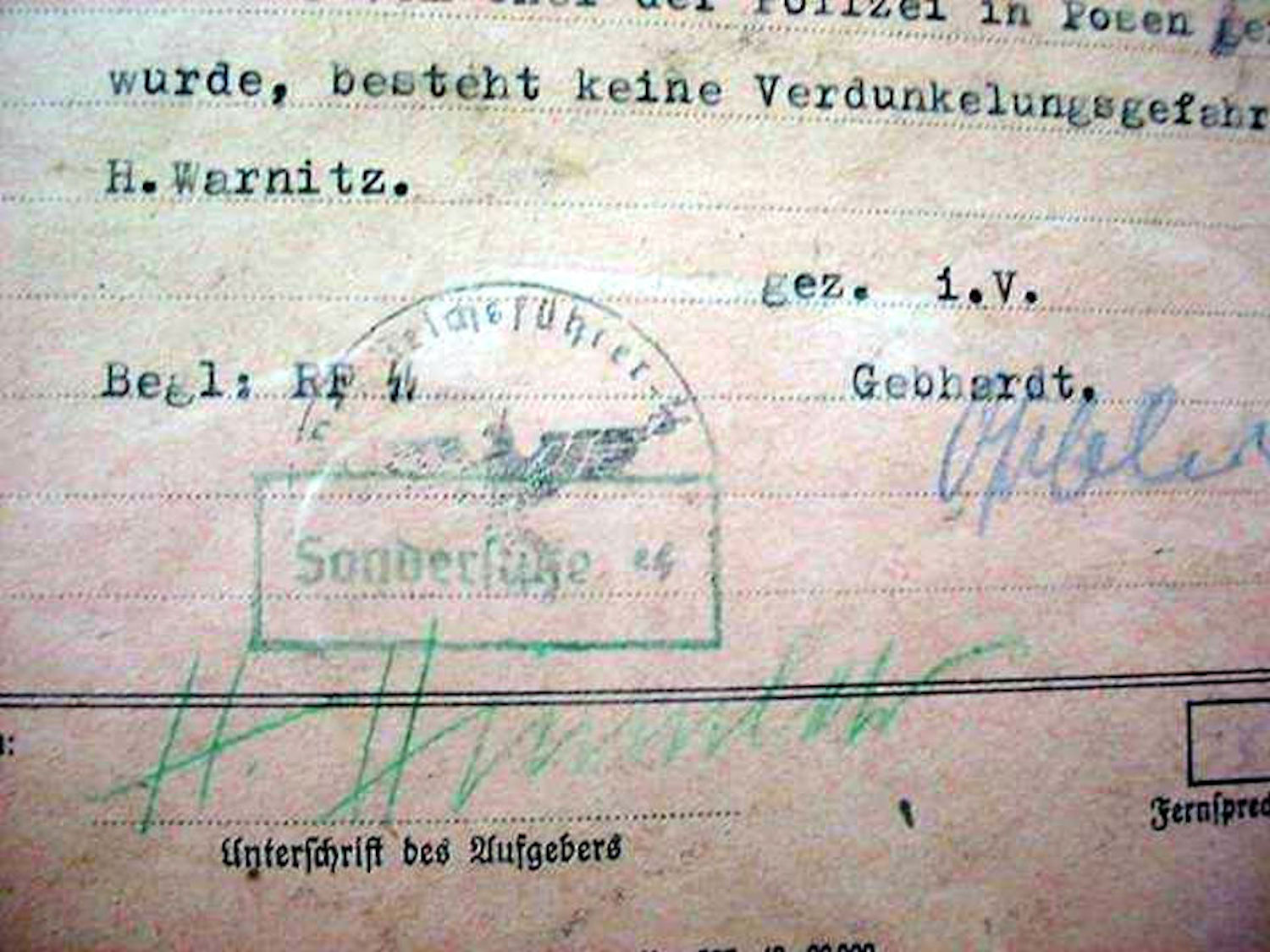 Highly Secret Communique from and signed by Heinrich Himmler (Item HH 4-20) |