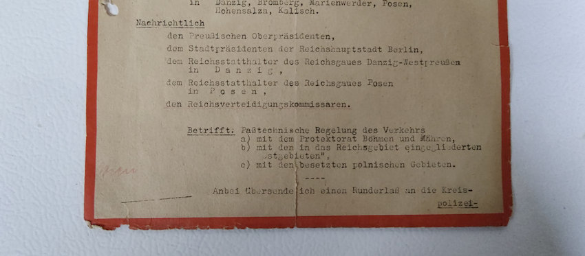 DESCRIPTION: This is a museum-grade document and a historical treasure. This is the actual (not a copy) of Heinrich Himmler's directive issued under the auspices of the general government and the police president in Vienna, Austria dated January 1941. Subject: The issuing of passes through the Reich's protectorates Bohemia and Moravia. The order comes with the express directive from Reichsführer-SS and Chief of the Deutschen Polizei Reichsministerium des innerin in Berlin (Himmler). The order basically is a further extension of an order from 28 January 1940, and notices that the permits for nonstop travel through the protectorates (for example using a shorter route) will not be issued. It refers to sealed carriages to be used only with special permit and these do not cover stopping for any reason. The police president takes issue with the order in certain aspects. He notes that some smaller police stations along the routes (completely against regulations) have issued permits. He then cites several violations and suggests reevaluation of the process. He brings forth an example of the hardships suffered by travelers having to make a detour of several hundred kilometers to avoid entering the protectorate, resulting in higher gasoline consumption and wasted time. The basic translation of the document was done by our translator and adviser, Willi. The order is countersigned by RFSS Heinrich Himmler himself in the usual green pencil over a stamp from his offices. The framing on this piece is incredible! Because it is so prodigiously important, it has received a very special mounting and because the document is double-sided we have framed it in double-sided glass, involving much careful artwork. Both sides of the directive can be seen. The frame is 32 x 19 1/2 inches. The document is 16 x 10 3/4 inches. It is all framed and matted with 100 percent acid-free museum-grade material. Since this was mounted originally in a German ring binder you can see the punch holes. This was the usual way to store important documents. A copy of Willi's translations goes with the item. It is duly noted that this is a unique, original document that portrays the tight inner workings and security measures of the German police establishment. This is extremely rare.