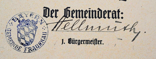 DESCRIPTION: This extremely rare document was presented to Heinrich Himmler by Mayor Hellmuth of Frauenau, Germany, in thankful appreciation of Himmler’s connection with the local NSDAP conferring honorary citizenship upon him. It was signed by the mayor and is on faded red/pink parchment paper with slight damage to one edge. It is encased in a folio measuring 16 x 22 inches and is of beautiful blue leather with gold edging. The folder was not added later, but is part of the original presentation. The red and black calligraphy, hand executed, is wonderful and a tribute to the art. It was presented 28 March 1933. This was the year of the ascension of the NSDAP. During the Third Reich the highest placed individuals in the estimation of local citizenry would present such honorary citizenships to such dignitaries as Hitler, Göring, Goebbels, and as we present here, Himmler. These were called Ehrenbürgerschaft or Honorary Citizenships. They are quite rare when found and often in poor condition. We are exceptionally proud to offer this presentation documenting a moment in historical time when the NSDAP saw fit to honor their leader while looking forward to achieving victory over Bolshevism.