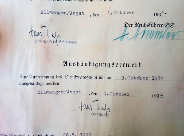 Service Contract Between an Untersturmführer and Reichsführer SS Heinrich Himmler (Chief of the Entire SS) (Item HH 4-22) |