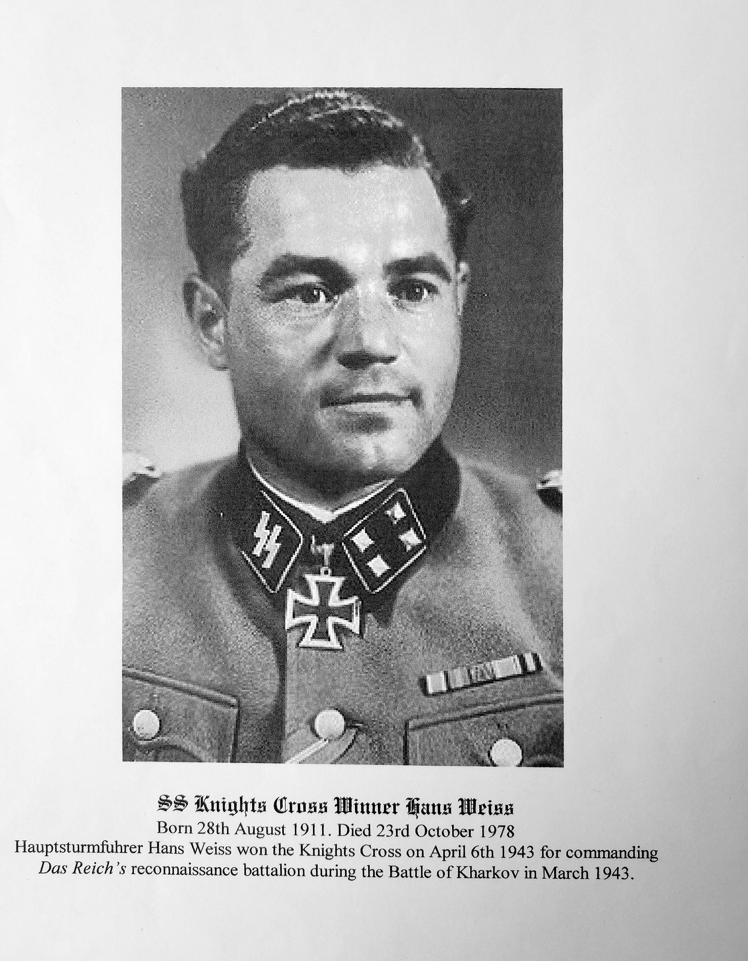 DESCRIPTION: In this service contract the German Reich is represented by a member of the interior who in turn is represented by the Reichsführer SS. This document denotes the following service contract with Untersturmführer Hans Weiss, SS no. 47-390. Weiss was born on August 28, 1911, at Vohringen/Iller. Weiss signs twice and is committed to serve continuously as an officer in the SS-Verfügungstruppe up to the completion of the 45th year of his life subject to the laws, decrees, and regulations valid for the SS-Verfügungstruppe. Upon completion of the 45th year of life, the service contract is extended year by year, unless it is terminated one quarter of a year before the end of the year. The first year of service as an SS officer counts as a probationary period. During this period, the Reichsführer SS is entitled to terminate this contract at any time with a cancellation period of one quarter of a year. A justification for this termination is not required; it is legally binding. It is not possible to raise objection against it. This was signed at Ellwangen/Jagst. There is a notation of handing over one copy of this service contract (each). The signatures of Himmler and Weiss are clear. The Reichsführer’s choice in Nordic and German supremacy was well chosen in his selection of Weiss as the latter was a Hauptsturmführer who won the Knight’s Cross April 6, 1943, for commanding Das Reich’s reconnaissance division during the battle of Kharkov in March of 1943. He was commander of Heavy SS Tiger Battalion 102 and led the unit in combat during Operation Jupiter and the Battle for Hill 112. The brown edges with the holes at the side are due probably to wartime, the burning effect has nothing to do with poor restoration because the condition of the document was quite fragile and measures had been taken by a curator to preserve the document as it was not just glued, but carefully attached to Japanese paper with acid-free, water-soluble liquid used by museum curators. This means that the document can easily be removed without any damage by carefully moistening the backside of the Japanese paper. It has been framed with acid-free matting and the glass is museum glass to prevent damage from sunlight. The original frame is distressed by age, but holding up quite well. The overall frame size is 21 x 17½ inches and the document 12 x 8¾ inches. Documents like these with famous names are hardly seen on the market nowadays particularly in Europe where most people can read German. These documents are quite popular and collected. We would call this an extraordinary historical find.