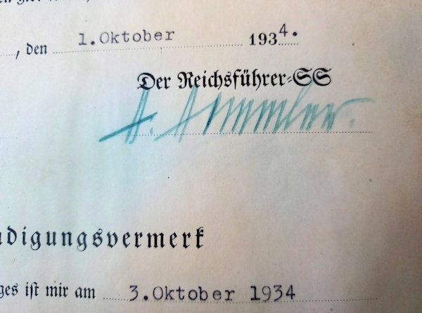 Reichsführer Heinrich Himmler Document (Item HH 4-26) |