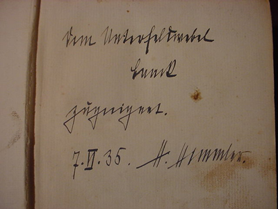 Book Hand Signed and Dedicated by Heinrich Himmler in 1935 (Item HH 4-13) |
