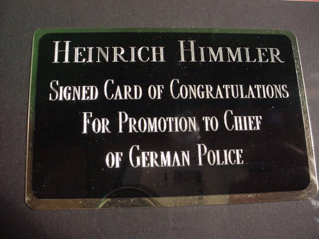 A Thankful Appreciation Card from Heinrich Himmler (Item HH 4-6; POL 2-18) |