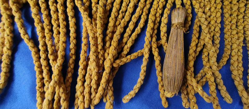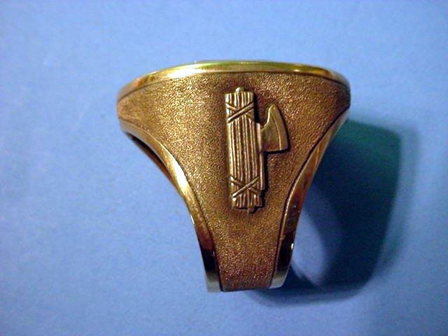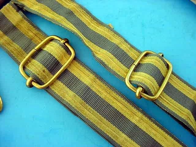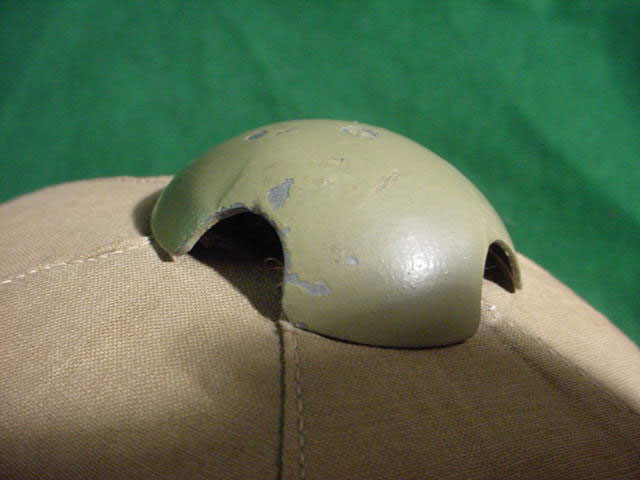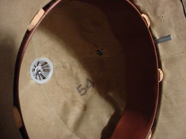 DESCRIPTION: This is similar to the one above in I-FAS 4-1 only this one is not moth eaten at all and the feather is different (green and fluffy). The eagle is the same and is for a lower rank because it does not have the inverted “V” bullion patch. The bunting and the cord that surround the crown are also in the same very nice condition with silk liner and leather sweatband. Size is small.