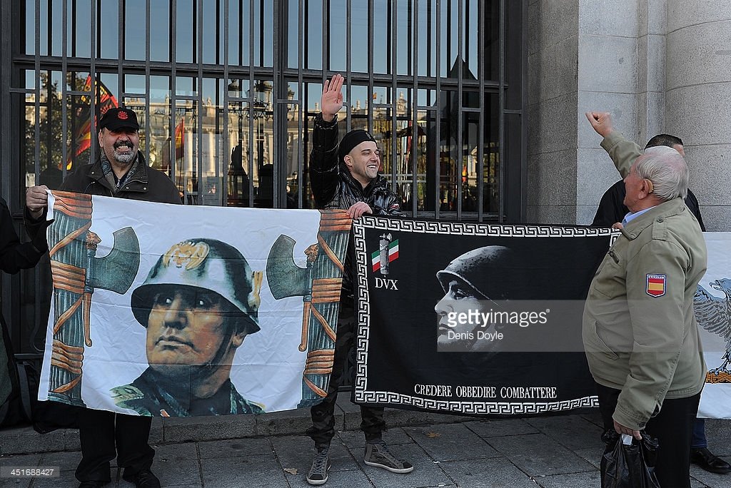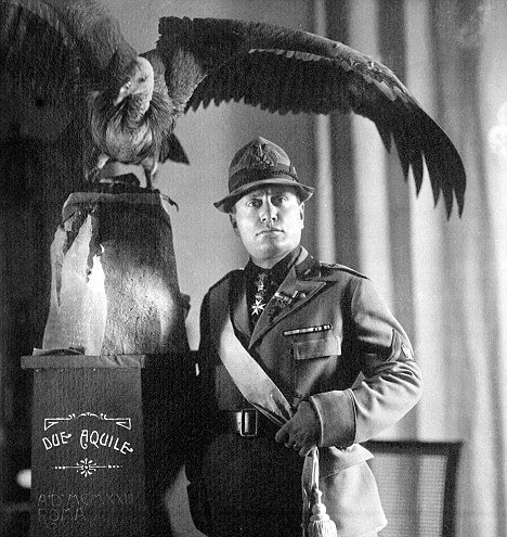 Spectacular Bronze Figure of Il Duce (Benito Mussolini) (Item IFAS 4-27; BRONZEMET 4-11; Special Items) DESCRIPTION: This is not only a fantastic likeness of the Fascist dictator, but is a superior piece of ultrarealistic art in its own right, as well. To bring about a true image of a human subject in a painting is challenging indeed, especially in realism, but to create a subject in woodcarving or clay and bring out the character and nature of the person portrayed is a very lofty achievement, indeed. Remember, a finished bronze creation begins with a handmade (carved) template before it's cast, and therein lies the difference between a pleasing, noble masterpiece like this one, and a contemporary nightmare piece of degenerate trash (Picasso). The sculptor R. Panacea certainly breathed life into the man, Benito Mussolini. It was Il Duce that said: "It is better to live one day as a lion than 100 years as a sheep." He certainly lived by this quote and the artist Panacea brings this out in a vibrant, powerful way. Il Duce’s facial features clearly demonstrate the arrogant yet noble aspirations of this later-day Caesar. |
