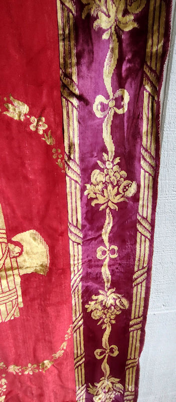 DESCRIPTION: Here is a large poster measuring 17 x 24 inches (43 x 61 cm). We have seen reproductions on paper of this poster, but in sizes 12 x 17 (30.5 x 61 cm). This is obviously an original and comes from the captured enemy propaganda archives in Moscow. This is what we were told by the Russian collector whom we were able to buy some from. They are obviously different than the inferior repros out there. This poster is on hard-stock poster paper as originals always were. This is so different from the silly Xerox-type cheap copies pushed by other sites. The Poster Here is depicted a soldier of the Italian Waffen-SS Division which encourages young Italians to enlist in the corps. It states translated: “For enlistment in the Legion-Honor, Fidelity, Courage.” The soldier depicted makes the three fingered salute that was used by the Italian Fascists. The salute gesture was based on an ancient Roman gesture. The poster is in good condition except that it was folded in half for many years and in fact was double folded and this shows in the middle of the picture, but it can easily be straightened out with the tender, loving care of the new owner (collector). Down in the left corner there are letters and numerals that read “1.FR.08 Ital.” This is a very dramatic and rare poster, and a *prodigiously important relic. Please ignore the white background under the poster; it is only a backdrop and is not with the poster. PRICE: SOLD |