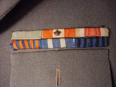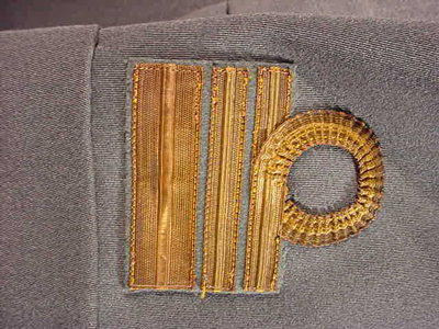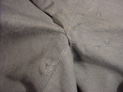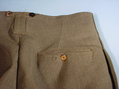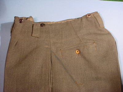 DESCRIPTION: This is a tunic, overseers cap and trousers in good condition. Quite rare that this is for a ranking officer (Lt. Colonel of the General Staff). The tunic bears his campaign ribbons; but not being an expert in Fascist items, we do not recognize them. There are a few minor holes in the crotch area (shown). The cap does not match in color, but it is a proper cap for this rank. Generally in fine condition. PRICE: SOLD |