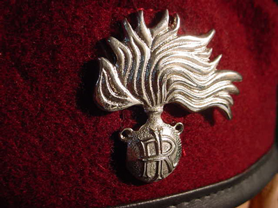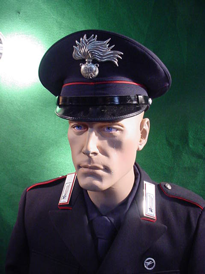 DESCRIPTION: These are some of the special units of elite police in Italy who waged war on the mob. This is not a WWII uniform, but we admire these tough cops so much that we decided to include this sharp uniform in our Italian section. These men are assigned to the Carabinieri Military Police. This uniform is from the Tuscania Airborne Regiment. It has to be the most beautiful and dramatic uniform of any police unit worldwide. The outfit we have is comprised of tunic, dress cap, beret and trousers. All are in excellent condition. Anyone who says Italians can't be crack troops hasn't met the Carabinieri! PRICE: SOLD or TRADED |