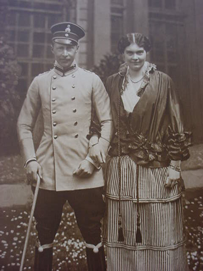 DESCRIPTION: This album is filled with 81 postcards all depicting the Prussian Crown Prince Wilhelm (1882-1951) and his family. Many poses of the handsome Prince in various outfits -- civilian and hunting uniforms and civilian and hunting clothing. There are also many pictures of his beautiful wife Cecillle (1886- 1954). She was the crown Princess of Prussian. Also pictured together with their father and mother and individually are their children, Prince Wilhelm of Prussia, Prince Louis Ferdinand, Prince Hubertus, Prince Fredrich, Princess Alexandrine, and Princess Cecille. The album measures 8" x 5" and is about 1 ½ inches thick. The album cover has a picture of the crown Prince in equestrian pose. The postcards are 5 ½" x 3 ½" in size. All the cards have titles painted on them. This is especially handy when it comes to identifying the children. Every one of the 81 cards is in immaculate condition and every one of them are of great historical interest and extremely scarce! The picture of the Princess Cecille with German soldiers and their officers is especially charming and she has her three sons with her dressed in their sailor suits.The dashing Prince is featured repeatedly throughout the album as soldier and family man. The album was procured at a 2009 military show from an older gentleman who said he collected the pictures for years and treasured them because his father was a gardener for the crown Prince at Potsdam and Berlin. The Prince was a noble member of the Hohenzollern Dynasty and probably he and his good wife were possibly the most photogenic of all the German Royalty. We have never seen such a great assemblage of pictures of this family before in all our years in this field. The absolute charm that emanates from the little album is immediately noticed when one opens the covers; every card is reminiscent of the days of glory and Teutonic splendor. We have pictured here only a few of the cards as space allows, but to choose ‘the best of them’ would be virtually impossible -- they are all in a word, ‘Great.’ PRICE: $1,215.00 This adds up to only $15 a card and many of them would easily fetch $20-$30 each at a postcard show. |