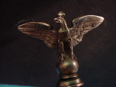 The Baton, or Swagger Stick This beautiful instrument has a fantastic rendering in carved bone with a ball-style top smooth to the touch and view; however, the most noticeable feature is seen below this as the most fantastic carving is seen depicting the German (Prussian eagle) carved in the most minute detail with every feather in full delineation. The wings of this noble bird wrap around the stock of this magnificent piece and you can see ornately carved bands of oak leaves below the folded wings. Even the head of the eagle is fine and realistic. This Deutscher Adler perches upon a shield that has the entwined, crystal-clear letters �WH.� These obviously stand for �Wilhelm of Hohenzollern.� Along with the letters, you can see the date �1887.� Kaiser Wilhelm I died in 1888, and his son, Frederick III, was proclaimed Emperor, but most sadly, this great Hohenzollern crown prince was already suffering from throat cancer and died after only 99 days as the German ruler. The last Kaiser, Wilhelm II, ascended to the throne on June 15, 1888, and ruled until November 9, 1918. The Baton The swagger stick, in lieu of a better word, measures two feet long with the earlier-described magnificent carved-bone eagle escutcheon. The shaft is a rather plain piece of unadorned wood that tapers slightly as it flows onto the tip. The tip is an additional piece fashioned in bone that seems to show some use. Why do we call it a baton or swagger stick? It could hardly be termed a cane, as the Kaiser was a very tall man towering well over six feet. Our theory is this: The eagle is reminiscent of the eagle of Frederick II, King of Prussian, who ruled as Hohenzollern King from 1740 to 1786. Could this swagger stick have been a gift to Kaiser Wilhelm I from some other royal personage in commemoration of Frederick II�s reign? This could have been a sort of get-well gift to the monarch. It might have been an exact replica of a baton that was once the possession of the one and only �Der Alte Fritz� (Frederick the Great of Prussia). Many relics found that were the personal property of the Fritz have featured realistic-looking eagles and lions and other noble creatures. This beautiful piece might possibly have been an item that was presented to the Emperor by a carver extraordinaire, possibly a man who had done detailed artwork for the House of Hohenzollern, before. The date �1887� is a year before the people�s beloved Kaiser passed away. It was a time when his adoring public brought presents to the palace in way of tribute to this old warrior king. These gifts were usually masterwork editions such as this piece of outstanding artistry. Any question of its being the property of Wilhelm I is moot as the eagles, the distinct Prussian style, and the obvious and conspicuous �WH� configuration would firmly have us believe that it is indeed a treasure of one of the most admired and greatest sovereigns of the Hohenzollern Dynasty. PRICE: $25,000.00