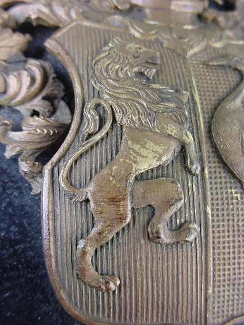 DESCRIPTION: This is without a doubt the most fantastic Kaiserzeit item ever found and actually brought back from the wars. Collectors and historians have called it the Kaiserlichstuhl "Kaiser Chair," but the fact is he never sat in it because he was always the complete monarchist and he referred to Parliament (the Reichstag) as the Reichsaffenhaus or "Monkey House." This piece of grand furniture resembles much more a throne that a chair. It once sat in the Reichstag in the lobby or entrance room for the Bundesrat (Federal Council). It was put together by three of the most famous of the artists in decorative furnishings that Germany had ever seen. The original design was by the great art sculptor Professor Anton Pruska in Munich. The leather carving was painstakingly executed by George Hulbe of Hamburg. The carving and final finishing was by the man who is called the Frank Lloyd Wright of German furnishing, Anton P�ssenbacher, of Munich's Odenplatz. We have a letter from the Deutscher Bundestag in Berlin dated June 25, 1991, where a Mr. E. Mattig, one of the curators of the historic research section, provides some information concerning the history of the chair. In 1985, he referred us to a gentleman named Michael S. Cullen, an American, who lived in Berlin and was contacted about the history of this monumental piece. Cullen had written a book called, Der Reichstag. Die Geschichte eines Monumentes, The Reichstag. The History of a Monument. Mr. Cullen also verified the authenticity and history of the chair and supplied actual pictures of the article as it looked sitting in the Reichstag building in the 1920's. The pictures revealed that there were four of these chairs and two benches that were basically of the same design. All except this one were reduced to ashes when the vicious Bolshevik hordes of Mongols and Tartars of the red army swarmed like rats all over Berlin in an "ape dance" of bestial rampage killing, raping, and murdering. Nothing of the old majestic Reichstag survived except for this single chair and that was because it had been sent to a repair shop long before the end of the war. Because of the impact of action even in 1943, work and deliveries to a great extent were curtailed, except for food and oil and other necessities. So, the chair fortunately sat in the shop and thereby missed the conflagration visited upon the once beautiful Reichstag building. After the war an American ranking officer of the occupation forces became aware of this article sitting in the show window of this repair shop. Since is was for the most part the reds that occupied the city, he, as a liaison officer, had to bribe the commies to not only look the other way, but to actually assist him in getting it packed up and loaded in an American truck to be sent to the American occupation zone in Munich. This having been accomplished after the expenditure of several cartons of Lucky Strikes this officer managed to make off with a treasure. After arrival in Munich the chair was dismantled and sent to Texas where it sat in a storage facility for many years until an American collector-dealer of some repute in Texas came to know about it and managed to acquire it, but payed a price equivalent to back-storage fees. Whatever happened to the officer who sent it to America we don't know (we weren't informed of his name or the liaison unit he was attached to). So now, a Kaiserstuhle of the Deutsches Reichstag sits in another warehouse in the states after being bought from the Texas entrepreneur (now deceased). The chair or, as we prefer to call it, throne, is awesome indeed. Its towering height is about 103 inches from floor to top and 47 inches across. It is nearly 9 feet tall and two average-sized people can easily sit side by side in the seat. The carving is nothing less than phenomenal with two Walkyries from Wagner's Der Ring des Nibelungen at the top. The faces of these, the daughters of Wotan and Erda, Br�nnhilde and Waltraute, are both different. The arms of the throne are fronted with two more different faces. These are thought to be the giants, Fasolt and Fafner, also from the Wagnerian saga. At the middle of the structure are the heads of an eagle and a wolf executed in the finest of wood carving also. The wolf and the eagle represent terrestrials that appear halfway through Wagner's immortal ring cycle. They are magical creatures belonging to the Germanic sky god, Wotan. They are often portrayed as the mounts that he rides. The giant German eagle, all carved in leather, has the Hohenzollern eagle depicted in the center of the chest to honor Kaiser Wilhelm, himself, who never sat in this chair. The Kaiser often said that the Reichstag was a "house of monkeys!," Affenhaus. He was a total monarchist having no respect for the parliamentarian process. But, somehow, we feel had he ever seen these magnificent pieces of grandiose furniture his sense of artistic appreciation for which he was well known would have made him salute, at least. He was an exalting monarch, but everything that went straight from Germanic saga went into this carving and leatherwork. All of this was the stuff of his favorite legends and heraldic appreciation. P�ssenbacher, the major contributor to these masterpieces was himself legendary in the 1800's and still today his work is seen as part of Germany's national treasures. He was the designer and builder of practically all of the magnificent furnishings for the Royal Bavarian palaces. The one that stands out foremost is King Ludwig's very famous tribute to the works of Richard Wagner, the castle, Neuswanstein, in lower Bavaria. But he also was the court cabinetmaker to Ludwig's father. The incredible fanciful furnishings were even entered into the official history books as "German Historicism" and they were immensely popular with monarchs, wealthy merchants, industrialists, and in general, the Teutonic aristocracy. His designs represented in that time German craftsmanship at its