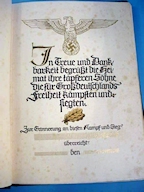 DESCRIPTION: Here is one of the best German Luftwaffe albums that we have ever seen. The picture of the airman who owned it is prominently displayed on its first page, but unfortunately he did not fill out the pages with his personal history. This is one of the deluxe albums with leather covering and a whole wonderful pictorial section with pictures of Adolf Hitler, Hermann Göring, and other top leaders of the Deutsche Wehrmacht. Then next you will see great pictures of the Wehrmacht in action at the Front, four pages of pictures of the Iron Cross series; and the other combat medals of the Third Reich. Then a dozen pages for entries having to do with the owner of the albums, deployments, promotions, wounds, and honors. Then there are 58 personal photos from the early career of this man. The spectacular part is that 88 percent of the book covers in actual photos his time spent with the NSFK, or Glider Corps. This, of course, was the clandestine training of future pilots in defiance of the ignoble Versailles Treaty that forbade Germany an effective air force. Actual pictures from this period and of this sequence of events are extremely scarce. After this we follow our hero to the time of actual motorized flight and we see some of the earliest aircraft and Luftwaffe uniforms. The pictures are mostly 4 x 2 ¾ in size except for the last two that are 6 ½ x 5. These two show a group an advancement ceremony, but, unfortunately, these are a little bit damaged. There are also two extra loose pictures in the 6 ½ x 5 size; one shows the outdoor ceremony and the seated recruits, and another shows the camp HQ building and Luftwaffe personnel at attention. A bonus is a ‘Fliegerkarte’ put out by none other than (BP) that is a detailed map of Germany especially mapped out in air routes with a beautiful color cover with an early single-engined aircraft. This is a great archival treasure considering its great rarity.