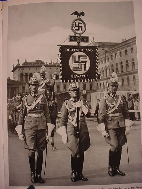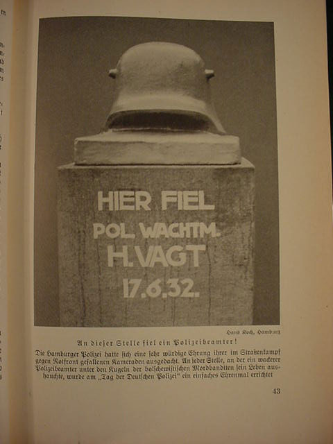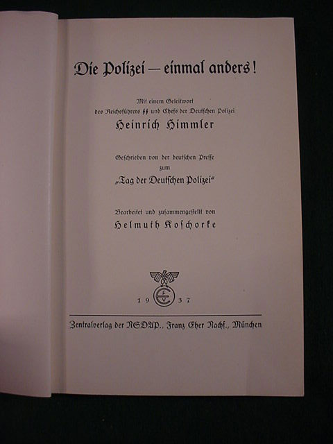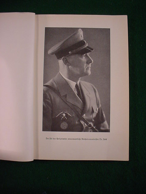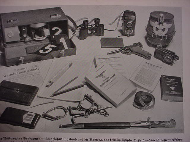 DESCRIPTION: This is a soft cover book of 240 pages dedicated to the saga of the German Police in the time of the Third Reich. It is highly illustrated with great pictures, a lot of them showing that the police officer is friend to the citizenry and especially to the German children. He was their Freund und Helfer (Friend and Helper). The book covers everything from the role of the street cop to the forensic labs and detective services. The Gestapo and Kripo are also touched upon. All the services that came under the duties of the police are herein demonstrated. The involvement with the fire depts., crowd control (communist control), classroom lectures, marine control, traffic control, and investigation of accident scenes, and unlike the police position in today’s U.S. the emphases was upon protection of the public rather than the protection of the state. Contrary to orthodox but incorrect public opinion along alleged historical lines. Such illumanaries as Dr. Wilhelm Frick, Heinrich Himmler, and Reinhard Heydrich are seen within the pages. This is truly a magnificent archival treasure about a subject not extensively covered in other journals. Size is 8 ¾ inches and ¾ inch thick.