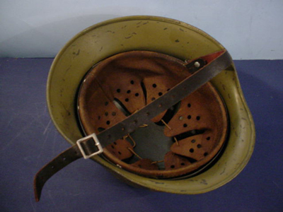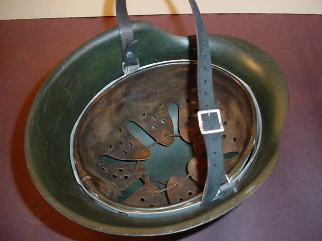 DESCRIPTION: This is a seldom encountered, Mod 42/45. First, observe the fact that this helmet has no air vents and is the type issued to the Army and Waffen-SS in the last of the crusade against the western allies and the red beast they saved ( Soviet Communism). The helmet appears to be original; we know the shell is for sure. It has a large chinstrap probably original with GIG markings and dated 1943. It has been refurbished with a new paint job and new liner. The very late helmets were all painted in this lemon-green color, just as the vehicles and other equipment were, as well, especially in late 1944 through 1945. This is an extremely rare helmet regardless of the excellent re-conditioning. You won’t likely find another of these out there in cyber space .This comes as a rare opportunity to acquire a piece lacking beauty but making it up in rarity. PRICE: $975.00 |