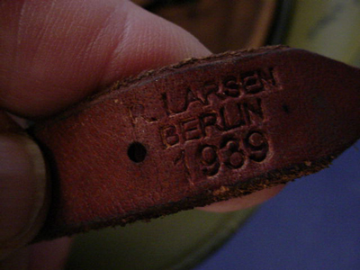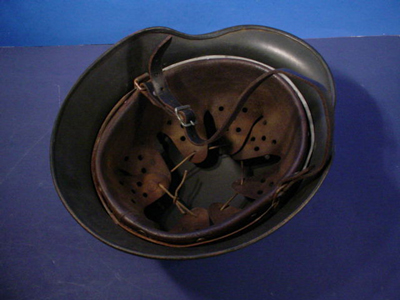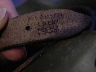 DESCRIPTION: Here you see an absolute state of the art refurbished helmet and just like the others it is an absolutely authentic WWII period helmet that has been excellently refurbished by the master of the craft who was particularly proud of this one! It has been repainted in the issue colors (tough to achieve.) New chin strap marked with company name and date 1940. It has the fine pigskin liner peculiar to Waffen PRICE: SOLD |