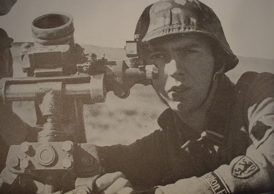 DESCRIPTION: A nice M-40 model camouflaged helmet in the camo color as used by the Deutsches Afrika Korp (DAK) but also used later in the European theatre of war. A nice size - (59). Has the number ET 66 Stamped on the side and 50-20 at the back of the inside shell. Chinstrap is stamped Pelzerbach Kirnen 1940. The helmet shell is of course original issue WWII. All the rest is a cosmetic job of the absolute finest done by the master refurbisher who works with us exclusively; the camo colors are really great in tan, rose, and green. Single SS decal of course. A choice gem for sure, and you know from looking at all the SOLD helmets, just how popular these Stalhelm that we present really are. Once we list them they usually go right out! Get one while the getting is good! PRICE: SOLD |