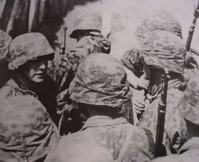Refurbished Waffen SS M-35 Helmet with Tropical Camouflage Finish (Item HELM 3-4) |