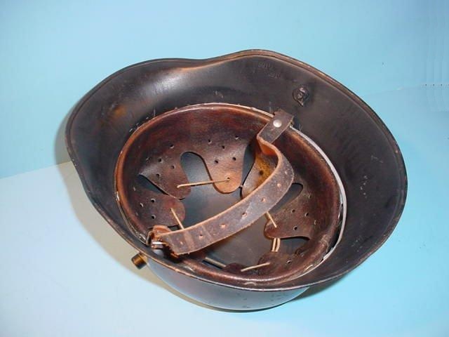 DESCRIPTION: Here is one that looks so unbelievably authentic to the period as to be frightening. What I mean by"frightening" is that it is so great looking in color throughout that one of the numerous scam artists out there could easily sell it for ‘real’ and I am sure it would never come back to him. The helmet is in the American size 66 with size 58 liner. The name of the manufacturer is on the chinstrap and it has one of the greatest decals currently available. This helmet shell is 100-percent original WWII and not one of the silly reproductions that abound out there. You will be proud to wear this one as a reenactor or just let it sit proudly on a shelf in your collection room and you will be happy that you didn’t have to pay $1,800 or so for it.