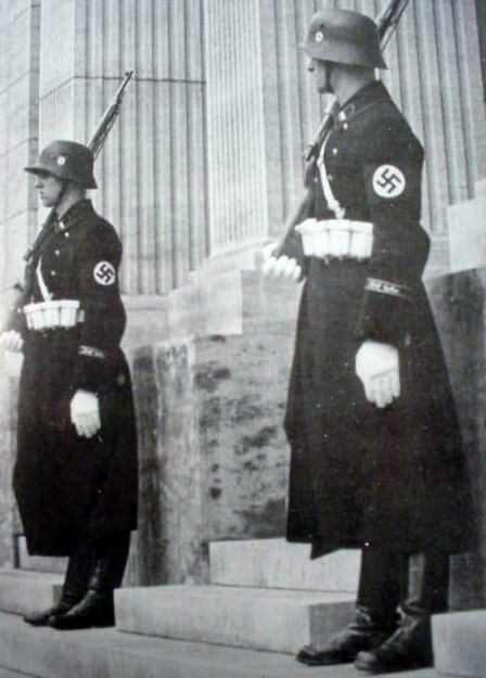 DESCRIPTION: These are WWI helmets that were refurbished prior to WWII and issued to the Verfügungstruppe (Combat Support Force SS-(VT). It was an armed combat unit of the SS and trained in the same way as the normal German Army (Das Heers). Formed in 1936, it actually was the precursor of the Waffen-SS. Use your favorite search engine with “Verfugungstruppe” for a history of this elite fighting force; it was involved in the invasion of Poland in 1939. The helmet is, of course, original as to the shell, but has been refurbished with new decals of the best type, new and perfect chinstrap, and liner all to proper specs. The excellent, new paint job makes it look very authentic, indeed. To further embellish it the helmet's rear lip has the name of an -Rottenführer H.Gerhard. It’s a fairly large-sized shell and may be the last refurbished helmet we will be able to offer. Our expert has retired.