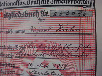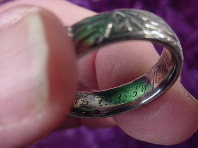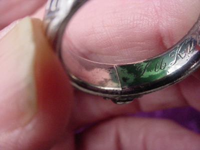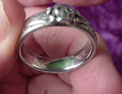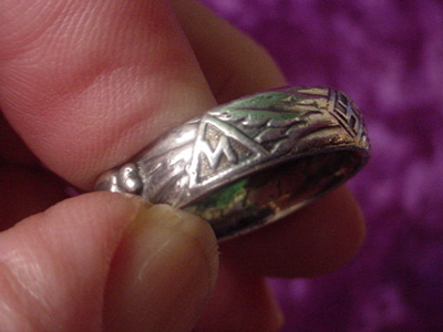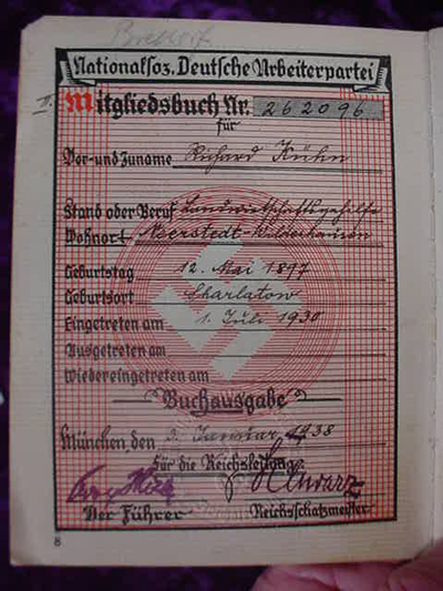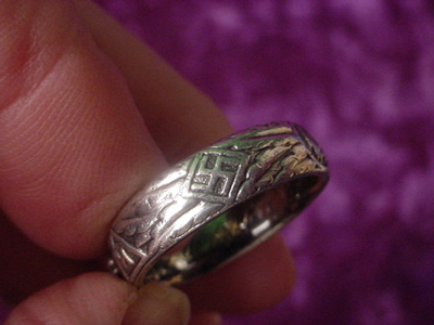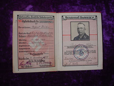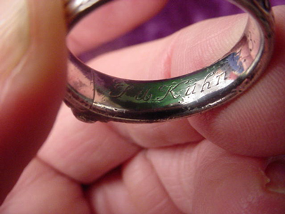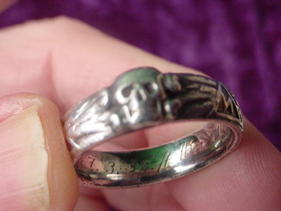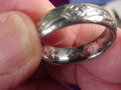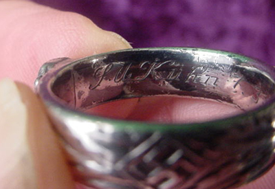 DESCRIPTION: Here is one of the most popular pieces of jewelry known to the military collector’s world and certainly the most sought after item of the Third Reich. Donald Boyle, the author of the book, The SS Totenkopf H. Himmler Ring 1933-1945, says these rings were bestowed upon selected members of the SS according to specific criteria. The ring was considered by Reichsfuhrer SS Heinrich Himmler to be of, if not, the most prestigious award of the Schutzstaffel. Construction techniques never varied and all of these rings were made of solid silver and followed the same design and pattern, although minor variations do occur since they were handmade. The inside of the honor rings contain the recipient’s last name, the date of the award, and a facsimile of Himmler’s signature (‘H. Himmler”) and the letters SLB (which stands for Seinen Lieben -- with respect and honor). The fascinating story of the history of these rings can be reviewed in Mr. Boyle’s intriguing book mentioned above. The book is a must read for those interested in the SS organization, The Wewelsburg Castle connection, and the mysticism surrounding it. Also, it is rather spellbinding to read about the criteria for the awarding of this coveted item and information on the Gahr company, the sole maker of these rings, details on construction; etc. This book is highly recommended! The ring we offer is in excellent plus condition. Most of the rings found are in very worn shape. Often the runes are either partially gone or completely gone from extensive wear. This ring was one that was awarded to a young SS man by the name of Richard Kuhn, and his identity book (which is included) details this information about him: Member of the National-Socialist German Workers Party This ring was taken from Kuhn whose picture shows him to be an Unterstrumfuhrer. The item was confiscated by a lieutenant in the Special Investigative Unit of the British Army. This lieutenant’s name was Frank E.O. Hansford. Hansford was a police detective in England before being selected to go to Germany to help sort out political prisoners who were members of the SS and other special units. We also have Hansford’s diary and there in one of the pages is what we would consider a very sad note dealing with the capture and interrogation of SS Untersturmfuhrer Kuhn. On the 21st of April, Lt. Hansford notes in his diary that Richard K. Kuhn hanged himself while incarcerated. Why? Well many of these young men were so exuberant about the Third Reich and its past and future that they could not see living in the ‘brave new world’ of democracy, preferring honorable death to entering the world of ‘Coca-Cola and chewing gum culture’ (to them it loomed as An Orwellian nightmare!) We will never know if this was Kuhn’s motivation, but it seems he stayed true to his SS oath. “Meine Ehre Heisst Treue.” My honor is Loyalty. The ring is marked 7/3/36 and of course it has all the marks inside to include “Seinen Leben (S/L)” and his last name, Kuhn and the facsimile signature of Reichsfuhrer Heinrich Himmler. The ring is the rarely found 1930’s style and is excellent plus condition. It would have to be rated as one of the finest examples we have ever offered of these prodigiously important relics and to have the NSDAP Party book with it is practically unheard of! The ring is clearly an excellent textbook example with the nice joiner seam inside and typical engraving. The size of the ring is English size W and this is equivalent, according to a jeweler, to American size 11. The internal diameter is just over 0.8 inches. Whether you collect daggers, badges, or uniforms none can really compare to the SS mythos and historical importance of the Totenkopf honor ring, which was the uncontested highest SS-officer award in that, was presented and approved by the Reichsfuhrer, Heinrich Himmler himself. So this is it! ‘The ultimate N.S. item! Nothing excites the SS collector more that this particular piece of jewelry. No. 1. Along with the ring is also included the picture of lieutenant the interrogator Hansford and his diary where he notes the “suicide”? Of the prisoner and a few pages from his Hansford’s field message book. This is an incredible grouping considering the provenance and extra items that are with it. Here is a rather sad story but this grouping of items are testimony to a brave young man’s loyalty and high ideals. To have received the ring he would have had to be a rather special soldier of the German Reich! PRICE: $14,000.00 Very reasonable for this one! (NO LONGER AVAILABLE) |