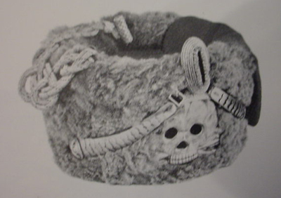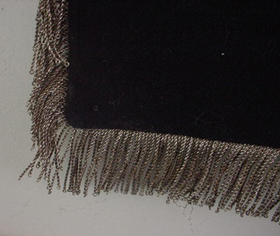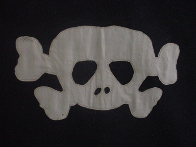 DESCRIPTION: This is a very early trumpet banner of the Death's Head Standard. It is measured at 23 x 18 ½ inches not counting the fringe on the three sides; this silver bullion fringe is about 2 inches long. Also there are three cloth loops at the top that are about 1 ¼ inches long. These are for fastening the banner to the trumpet. The item has been black lighted and passes the tests. The piece was from the estate of PFC James D. Lund, U.S. Army 2679032 who was attached to the U.S. lst Armored Division. To see more about the Totenkopf Verbande go to our site in the Allgemeine SS section listings and go to page four and to SS 4-5. The skull on this banner is probably the ugliest I have ever seen but it must be kept in mind that in the earliest days of the NSDAP there was no issue of such things and it was pretty much go it on your own as far as such individual trappings were constructed. Much of the items like the banner would be pretty much left to the imagination of men in the units and perhaps their wives who did the sewing. The banner is certainly in keeping with the Esprit d’Corp of this unit of steel hard troopers. Later trumpet banners after 1934 were rather more artistically manufactured in a more professional manner. This however is much more rare in that it is a Kampzeit item (Time of Struggle). If it isn’t pretty it is strongly suggestive of power (Starke Macht!) These troops were not anyone that the Commie street hoodlums wanted to tangle with. They were tough and unrelenting. The material is a heavy grade wool that has a natural stiffness to it, not at all light or flimsy. The wool has the same weave pattern as some of the NSDAP banners. The skull being jawless is much like the Hussar skulls on the busbies of those stalwart elite horsemen of old. The SS runes and skull are fashioned from a high grade linen and are applied by way of heavy machine stitching in an overlapped (V) pattern. Both display dye bleed into them from the black wool base. They have brown age discoloring in areas. There is one area where the weave has been slightly broken on one rune where this was folded onto itself. The bullion has a cotton base that has age where it is exposed to a camel brown color and the bullion itself has an age patina that is exactly like other flags that we have acquired from veterans. So, we are quite content that this banner is 100% original and extremely rare. PRICE: SOLD |