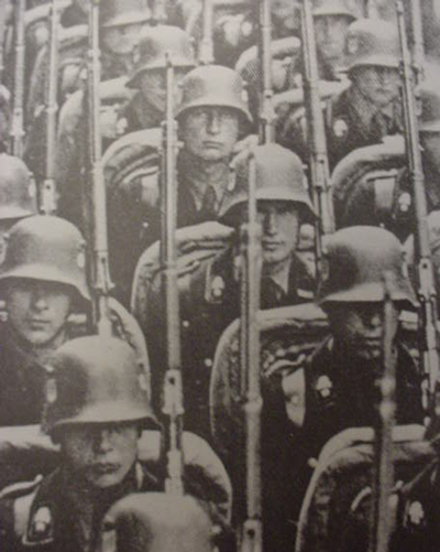DESCRIPTION: We proudly present an exquisite reduplication of Wolfgang Willrich’s folder of 12 prints produced in 1936 featuring the bust portraits of both Allgemeine and V.T. Troopers. Although Willrich was one of the most gifted and prolific artists of the Third Reich, this particular offering is so rare that only 3 original sets are known of in collections today. Therefore, we are extremely pleased to offer this magnificent reproduction that is accurate in every detail including size, sepia tones, and the finest printing quality available anywhere. We have a limited quantity available and because of the beauty and rarity of this portfolio, we are sure that it will become valuable in a short time; a real collector’s opportunity. The prints are individually presented and not bound (suitable for framing) and measure 11 1/2 x 16 1/2 inches with a page of the same dimensions containing a foreword by Heinrich Himmler concerning the importance of this set of prints to the ideology of the Nazi Movement. All are enclosed inside a heavy and handsome black folder boldly embossed with the SS runes and legend. PRICE: $39.95 plus postage and handling -dealer inquiries solicited - very good lot prices available |