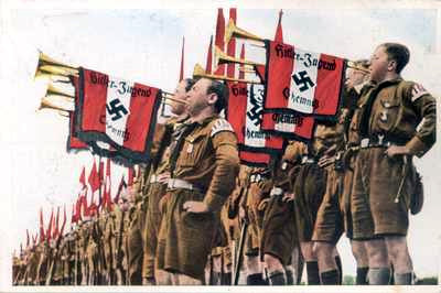 DESCRIPTION: This is rare one printed in 1934 by the book handlers for the National Socialist Party under the auspices of Hans Schumm printing in Altona Elbe. The book comprises 64 pages with all the early party favorites such as �Argonnerwald,� �Deutschland erwacht!,� �Deutschland �ber alles,� �Horst Wessel Lied,� �Hitlerlied,� �Hitler-Jugend-Lied,� �Den Toten des 9 November 1923,� �Annemaria,� �Marschlied der SS,� �Volk ans Gewehr,� �Wenn alle untreu werden,� and the Hitler Youth song �Unser Fahne flattert uns voran� plus many more N.S. favorites that were sung by patriotic citizens and party functionaries. Nothing thrills quite like great Volkslieder and Parteilieder.